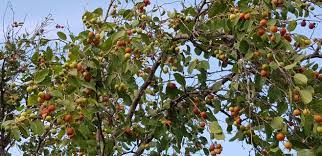 تتميز ثمارها بلونها البني المائل للاحمرار وتحتوي من الداخل على بذرة صلبة، ويبلغ قطرها 1 سم تقريبًا،ويُذكر أنّ طعمها حلو شبه حامضي قريب من طعم التفاح المُجفف.