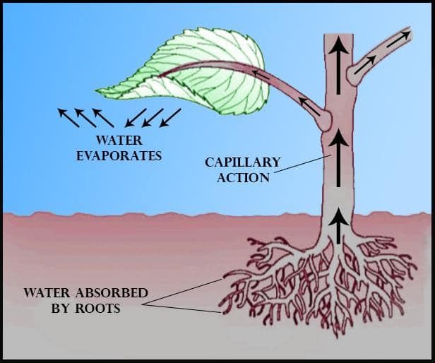 يمتص النبات غالبية الماء والمعادن من الجذور والقليل جدا من الأوراق والثغور. وعملية الإمتصاص من الجذور تكون من خلال الشعيرات الجذرية اساسا والقليل جدا من مناطق الجذر الاخري.