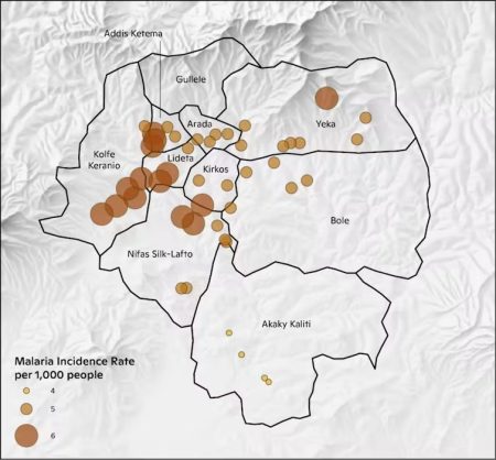 ويعيش حاليًا 67% من سكان أديس أبابا في مناطق معرضة للفيضانات، تشمل أجزاء المدينة الأكثر تعرضًا للخطر وسط أديس أبابا، حيث توجد أكبر كثافة من الأسطح غير المنفذة مثل المدرج والخرسانة، تساهم هذه في مخاطر الفيضانات لأن المياه لا يمكن أن تتسرب إلى الأرض.