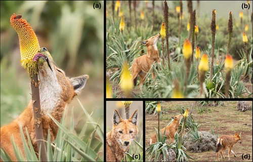 لوحظ أن الذئاب الإثيوبية، التي هي في المقام الأول من الحيوانات آكلة اللحوم، تتغذى على زهرة البوكر الحمراء الساخنة الإثيوبية – وهو سلوك غير عادي ومثير للاهتمام.