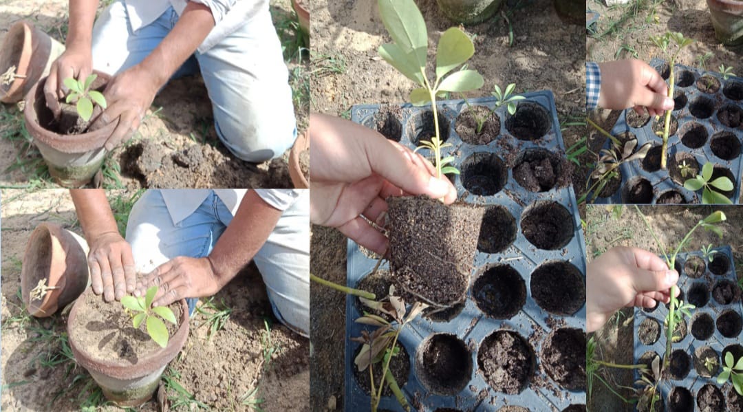 وقال يوسف يجب الاحتفاظ بالصلايا عند نقل الشجرة الي الأرض المستديمة وتجهيز الحفرة بعمق الجذور كما يتطلب الري المباشر حتي تتماسك الجذور بالتربة.