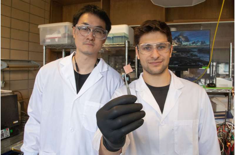وعلى الجانب الآخر، أضافوا طبقة من مادة نافيون، وهي بوليمر موصل للكهرباء يستخدم عادة في خلايا الوقود.