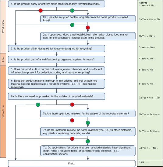 يعتمد على سبعة أسئلة بسيطة تغطي دورة حياة المنتج: الإنتاج والاستخدام ونهاية العمر. نهج “الفطرة السليمة” هذا يشبه التسلسل الهرمي للنفايات بترتيب أولوية بسيط يكون صحيحًا في معظم الحالات.