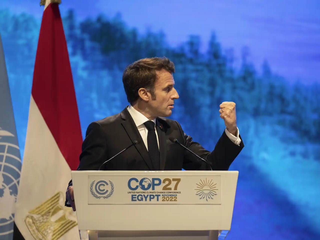 ألقى إيمانويل ماكرون، الرئيس الفرنسي، خطابًا بشأن مواجهة التحديات الناجمة عن التغيرات المناخية، على هامش إحدى الجلسات رفيعة المستوى خلال فعاليات مؤتمر الأطراف لاتفاقية الأمم المتحدة بشأن تغير المناخ COP27، والذي يعقد في مصر من 6 إلى 18 نوفمبر الجاري بمدينة شرم الشيخ.