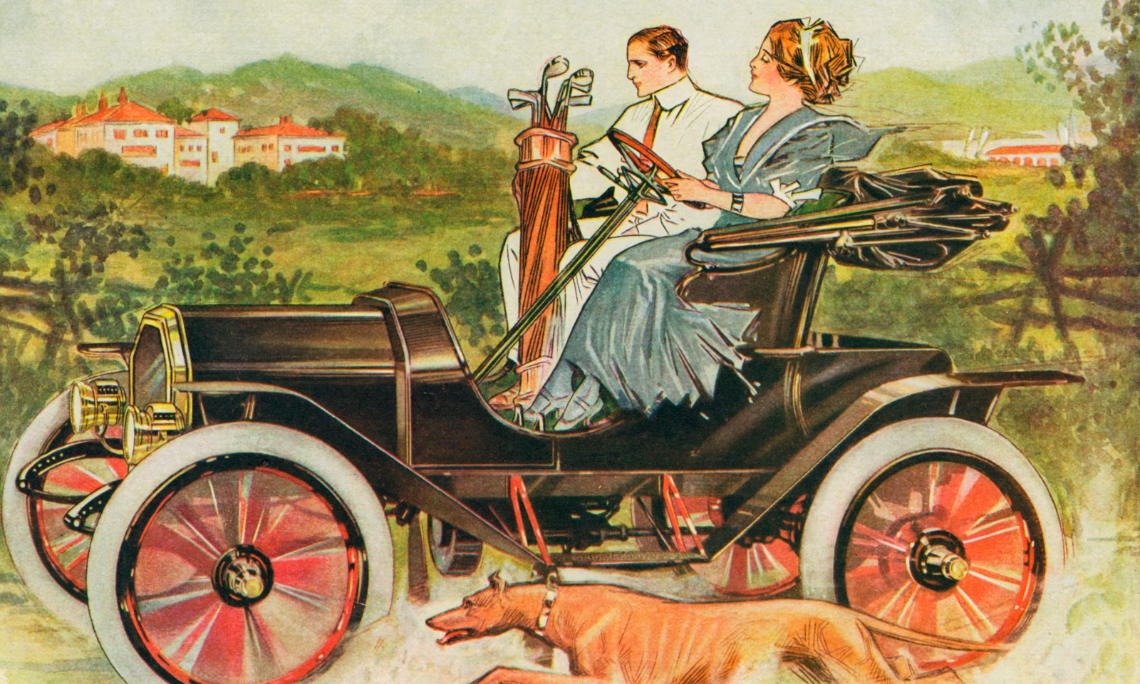 حتى كلارا فورد – زوجة هنري – قادت واحدة، في هذا الإعلان الذي يرجع إلى عام 1910، تقود امرأة زوجها إلى لعبة الجولف، ربما تتطلع إلى الجلوس بجوار ذلك الكلب الهادئ اللطيف بدلاً من الاستماع إليه وهو يتذمر من حاملته.