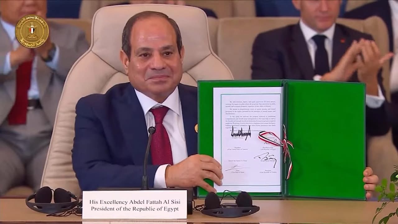 ووقّع رؤساء وزعماء كل من الولايات المتحدة ومصر وتركيا وقطر على وثيقة شاملة بشأن الاتفاق بين إسرائيل وحركة المقاومة الإسلامية (حماس).