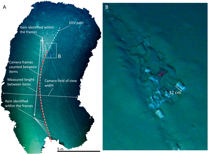 وقد تم تحديد ما مجموعه 167 قطعة – معظمها من البلاستيك والزجاج والمعادن والورق- في القاع، منها 148 قطعة من الحطام البحري، و19 قطعة أخرى يُحتمل أن تكون من صنع الإنسان.