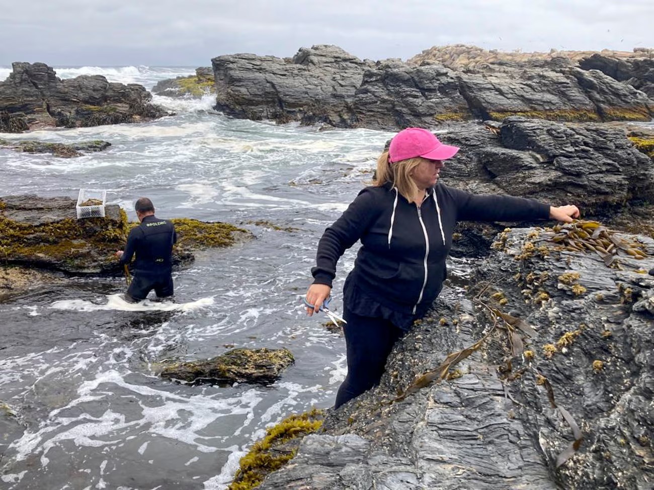 كل صباح، تتسلق جيزيلا السواحل الصخرية للمحيط الهادئ البارد في تشيلي، وهي تحمل مقصًا في يدها، وتقص الطحالب التي جرفتها المياه إلى الشاطئ وتجمعها. يرتدي شريكها بدلة غوص ويتحدى المياه الباردة لسحب الأعشاب البحرية إلى الشواطئ.