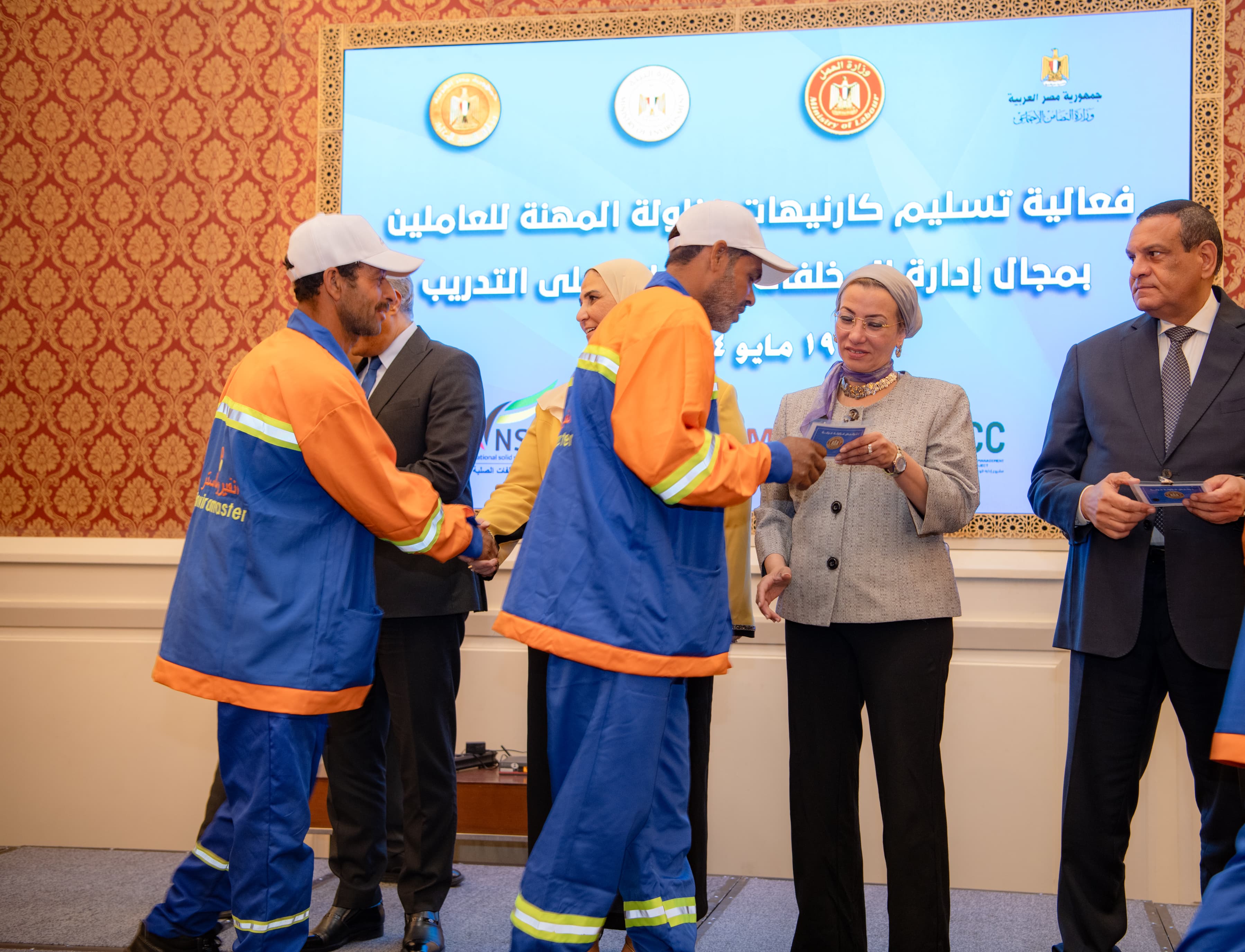 أعلنت الدكتورة ياسمين فؤاد وزيرة البيئة في الاحتفال تقنين أوضاع العمالة غير المنتظمة بمنظومة إدارة المخلفات والحاصلين على التدريب، وذلك من خلال تسليمهم كارنيهات مزاولة المهنة بناء على بروتوكول التعاون الثلاثي بين وزارات البيئة والتضامن الاجتماعي والقوى العاملة.