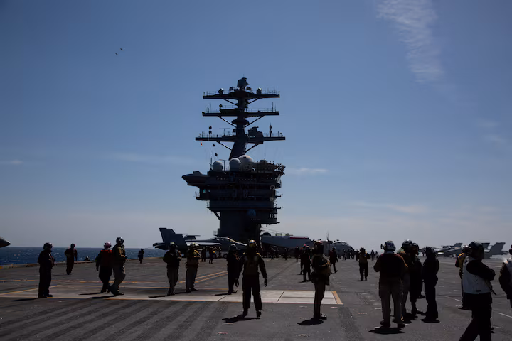 وستُنضم نيميتز إلى حاملة الطائرات فينسون لتعزيز إجراءات الحماية للقوات الأمريكية. وتأتي مغادرتها المفاجئة لمنطقة المحيطين الهندي والهادئ في إطار مهمة طارئة لم تكن مُعدة مسبقًا.