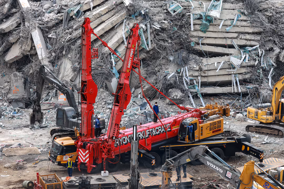 بعد مرور ما يقرب من أسبوع على وقوع الزلزال، قام الباحثون في تايلاند المجاورة بتمشيط جبل من الحطام الذي خلفه انهيار ناطحة سحاب في العاصمة بانكوك أثناء بنائها.
