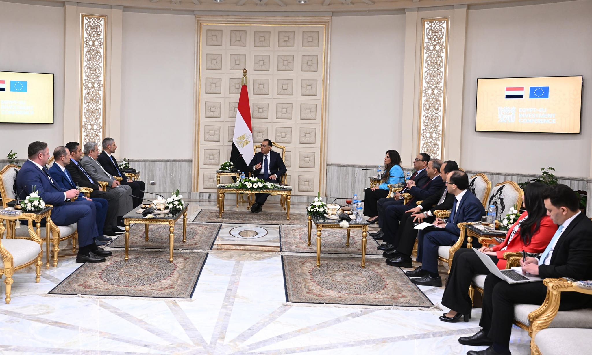 التقى الدكتور مصطفى مدبولي، رئيس مجلس الوزراء، اليوم، على هامش مؤتمر الاستثمار المصري الأوروبي المشترك، فيرون فاسيلياديس، مؤسس ورئيس مجلس إدارة شركة “في جروب” اليونانية المتخصصة في الحلول البيئية والوفد المرافق له.