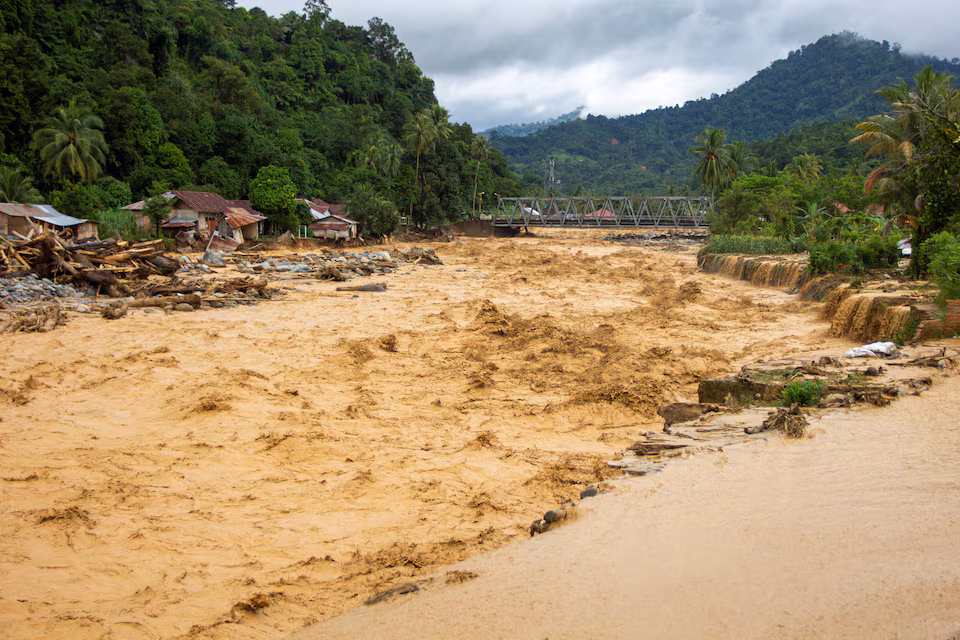 منازل مدمرة قرب ضفاف نهر في سومطرة بعد أن ضربتها سيول عنيفة