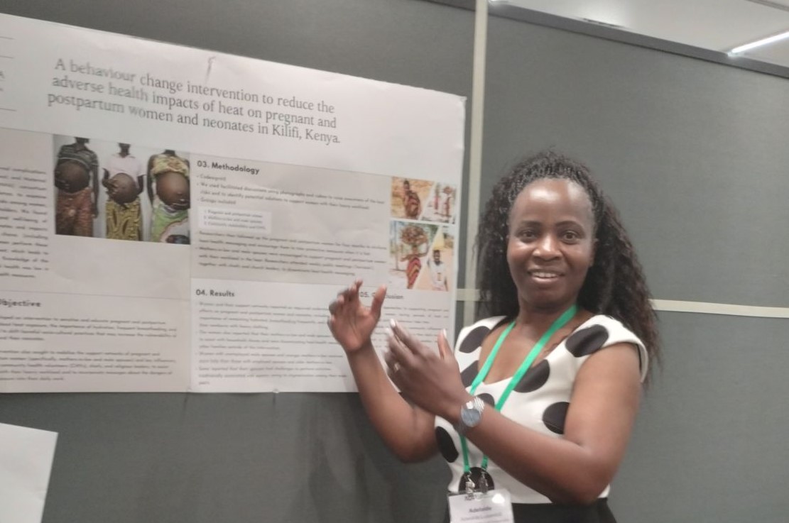 أوضحت الدكتورة أديلايد لوسامبيلي من جامعة إفريقيا الدولية في نيروبي، أن التعرض للحرارة أثناء الحمل مرتبط بزيادة وفيات الأطفال حديثي الولادة ، لقد درست آثار التغيير السلوكي على نتائج صحة الأم في كيليفي، كينيا، وتعمل عن كثب مع المجتمع هناك لتحديد نوع التدخلات التي ستكون مفيدة لهم.