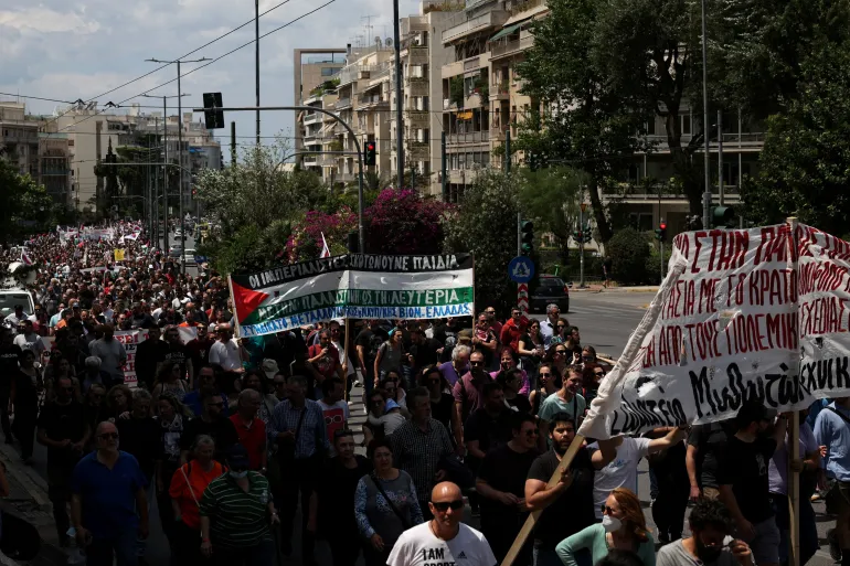وفي اليونان، شارك متظاهرون في مسيرة مؤيدة للفلسطينيين أمام السفارة الإسرائيلية بالعاصمة أثينا.