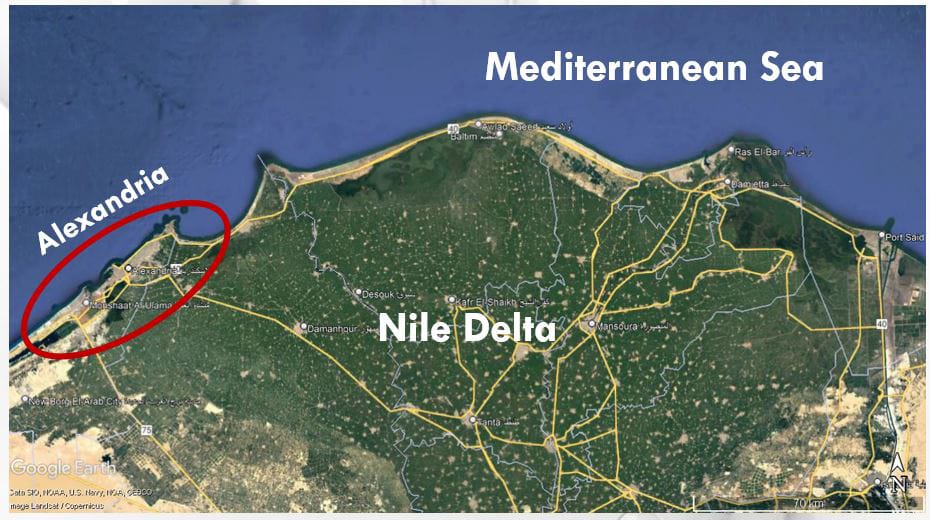 وتعد المنطقة الساحلية لدلتا النيل من بين أكثر الأراضي المنخفضة عرضة للتأثر بتأثيرات التغيرات المناخية وتعتبر محافظة الإسكندرية خامس مدينة ساحلية معرضة للتأثر بتأثيرات تغير المناخ في العالم، ورغم أن هذه المدينة تعاني من ظروف مناخية قاسية وأمواج شديدة، وفيضانات إلا أنه لا يوجد نظام تحذير مناسب يمكن أن يطلق تحذيرات لصانعي القرار.