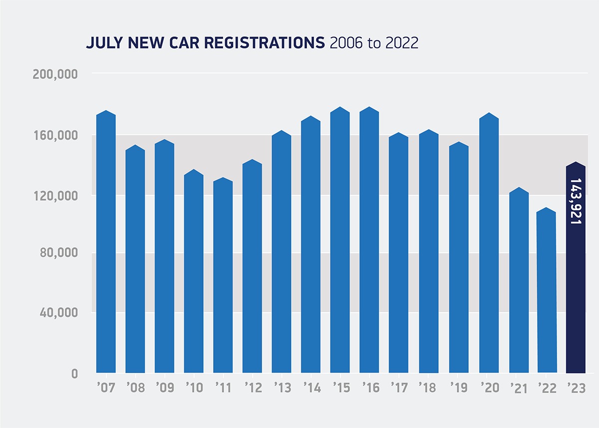 كان هذا أفضل أداء في يوليو منذ عام 2020 ، عندما تم إطلاق العنان للطلب المكبوت على السيارات الجديدة بعد ثلاثة أشهر من الإغلاق خلال الوباء، على الرغم من هذا النمو المستمر، إلا أن السوق العام حتى الآن لا يزال متخلفًا عن مستويات ما قبل الجائحة.