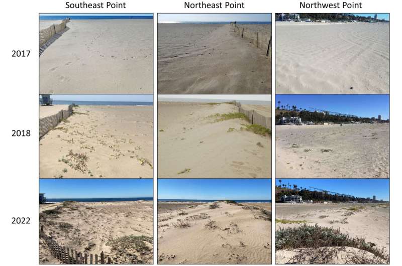 للنظر في كيف يمكن للنهج القائم على الطبيعة أن يساعد في تآكل السواحل الحضرية، اختار الباحثون في معهد العلوم البحرية بجامعة كاليفورنيا والمتعاونين معهم موقعًا بمساحة 12000 متر مربع على شاطئ سانتا مونيكا ، لوس أنجلوس، في ديسمبر 2016 وراقبوا استعادة المنطقة لمدة ست سنوات.