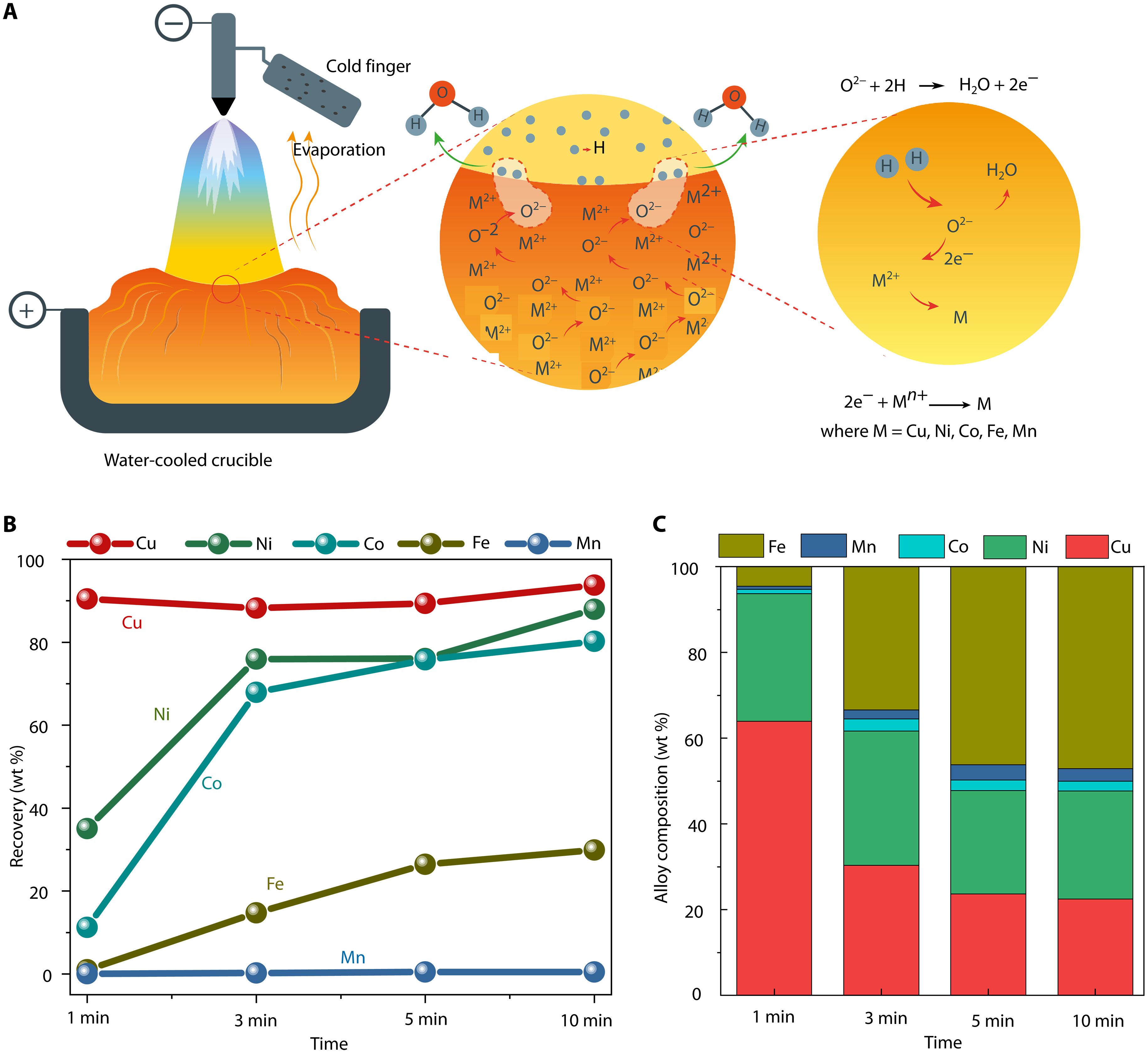 ويُستخلص النحاس أولًا في صورة شبه نقية، ثم يُضَخ الهيدروجين لتتكون سبيكة من النحاس والنيكل والكوبالت، إلى جانب أكاسيد منغنيز يمكن الاستفادة منها في صناعة البطاريات.