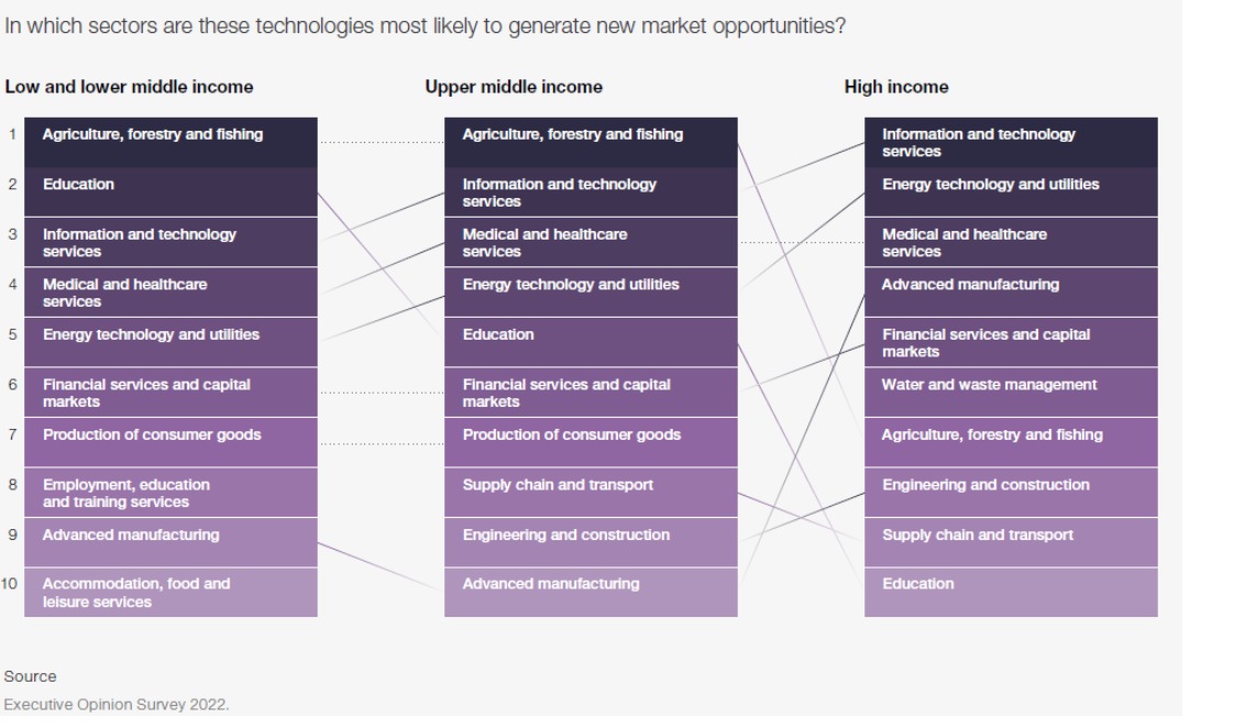 في وقت كانت فيه التوقعات للاقتصاد العالمي في أضعف مستوياتها منذ عام 1990 ، تحدد الأبحاث الحديثة من المنتدى الاقتصادي العالمي (WEF) الاتجاهات الجديدة التي تحدد أسواق النمو الرئيسية التي يمكن أن تنشط النمو الاقتصادي في خدمة المجتمع.
